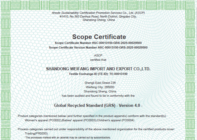 公司自營和代理服裝、食品、五金、化工、機電等各類商品及技術的進出口業務,公司有專門的生產、加工基地,并通過了Oeko - Tex Standard 100、GRS、OCS、RCS、USCTP等多項認證,可以按客戶要求設計生產,同時承辦中外合資經營、合作生產、開展“三來一補”以及技術輸出、易貨、邊境貿易等業務。公司產品出口到日本、法國、俄羅斯等50多個國家或地區。